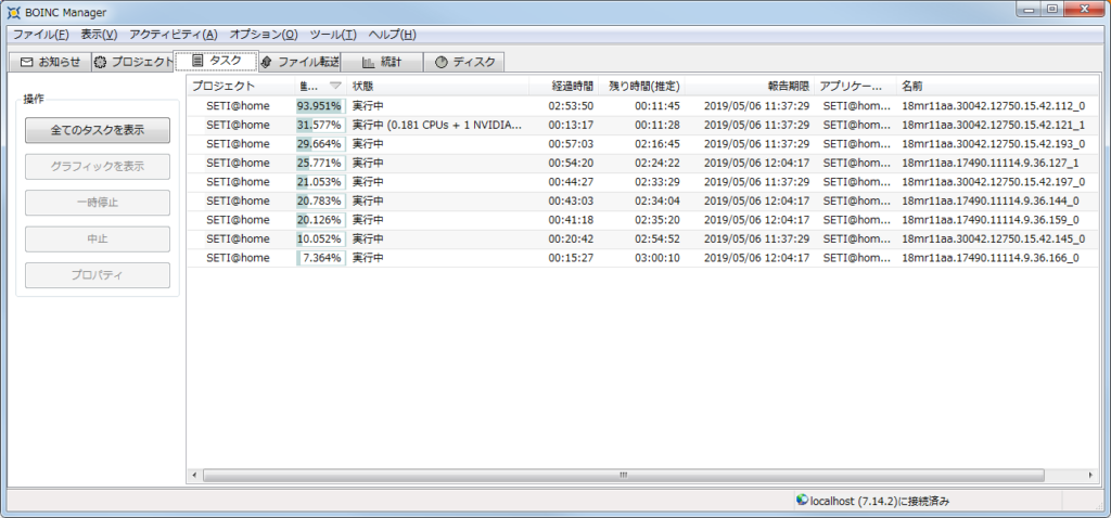 BOINC Managerの動作と実績