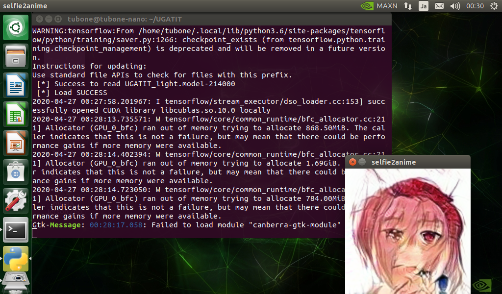 ディープラーニングで自撮り画像をアニメ画像に画風変換する方法を参考にJetson nanoでアニメ風自撮り画像を作ってみましたが、使っているカメラの互換性問題で少し躓いたので、修正してトライしたよ。というお話です。