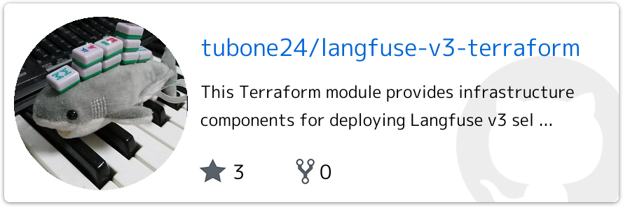 Langfuse v3のアーキテクチャをAWSマネージドサービスで作りたい場合はぜひ拙作のTerraformモジュールをご利用ください。