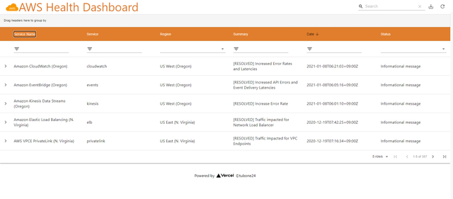 Next.jsとVercelを使ってAWS障害情報を見やすくするステータスダッシュボードを構築した記録。RecoilによるGlobal State管理、Material Tableでのデータ表示、Chart.jsでの障害可視化、Vercelへのデプロイ方法まで解説します。